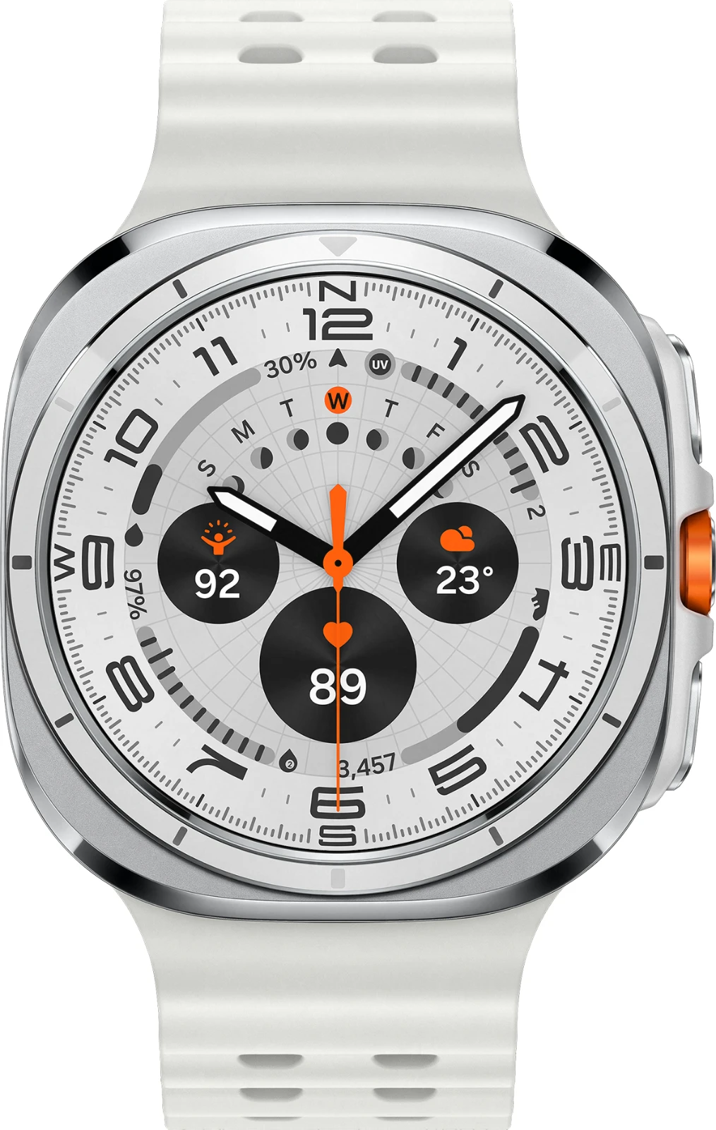 Das Marine Band für die Galaxy Watch Ultra besteht aus speziellem Nitrilkautschuk (HNBR) und eignet sich hervorragend für schweißtreibende Workouts oder im Alltag. Es ist unempfindlich gegenüber Temperaturänderungen, sowie verschleiß- und wasserbeständig. Mit Luftlöchern für zusätzliche Luftzirkulation sorgt das Marine Band für angenehmen Tragekomfort am Handgelenk, damit du Herausforderungen mit Bravour meistern kannst. Durch das Schnellwechselsystem, kannst du innerhalb von Sekunden das Band ohne weitere Hilfsmittel und mit nur einem Knopfdruck wechseln. Wähle ein Armband das zu deinem Stil passt und verleihe deiner Galaxy Watch Ultra einen persönlichen Touch.